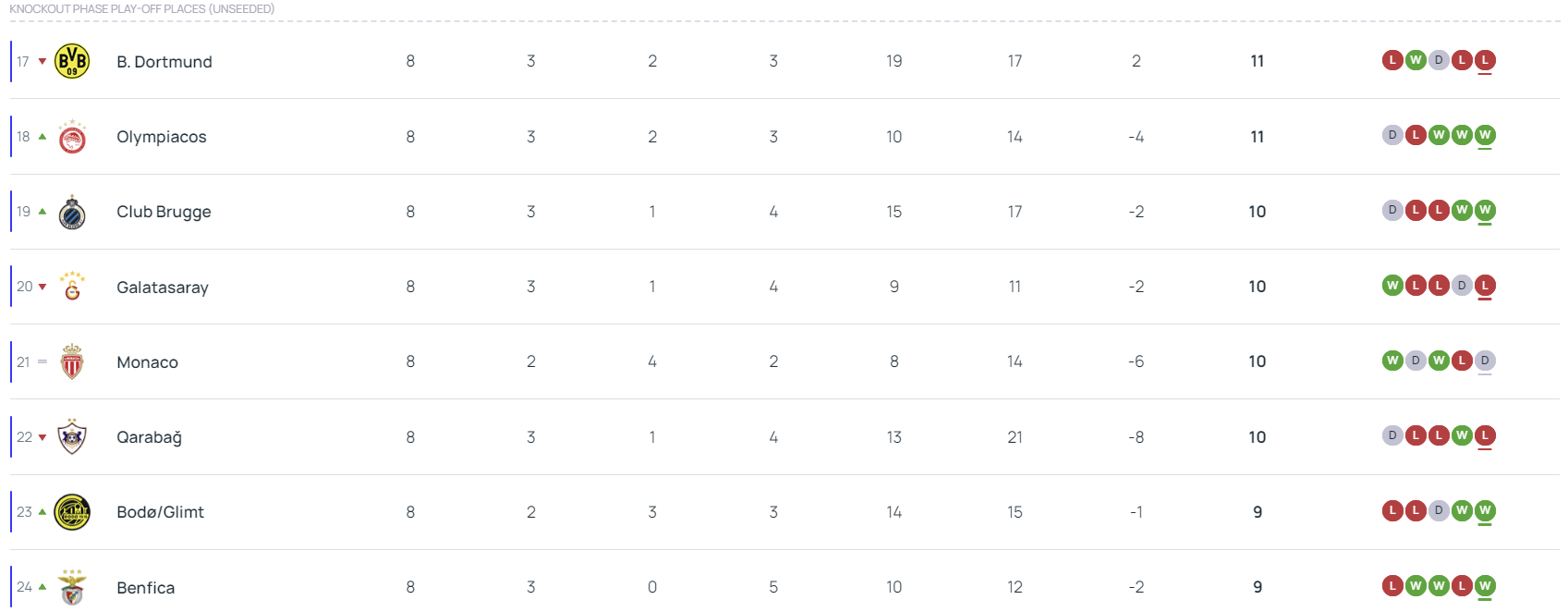 반면 16위~ 24위 팀들은 도르트문트를 제외하면 네임벨류가 떨어지는 팀들이 많은데요