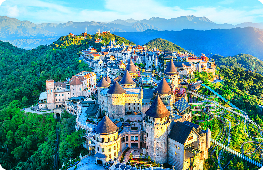 다낭 여행 필수 코스 중 하나인 바나힐은 해발 1,487m 산 위에 지어진 테마파크예요. 세계에서 두 번째로 긴 케이블카를 타고 약 20분 올라가면 구름 위 프랑스 마을이 펼쳐져요. 골든 브릿지는 거대한 두 손이 황금빛 다리를 받치고 있는 구조로, 전 세계 여행자들이 몰리는 포토존이에요.